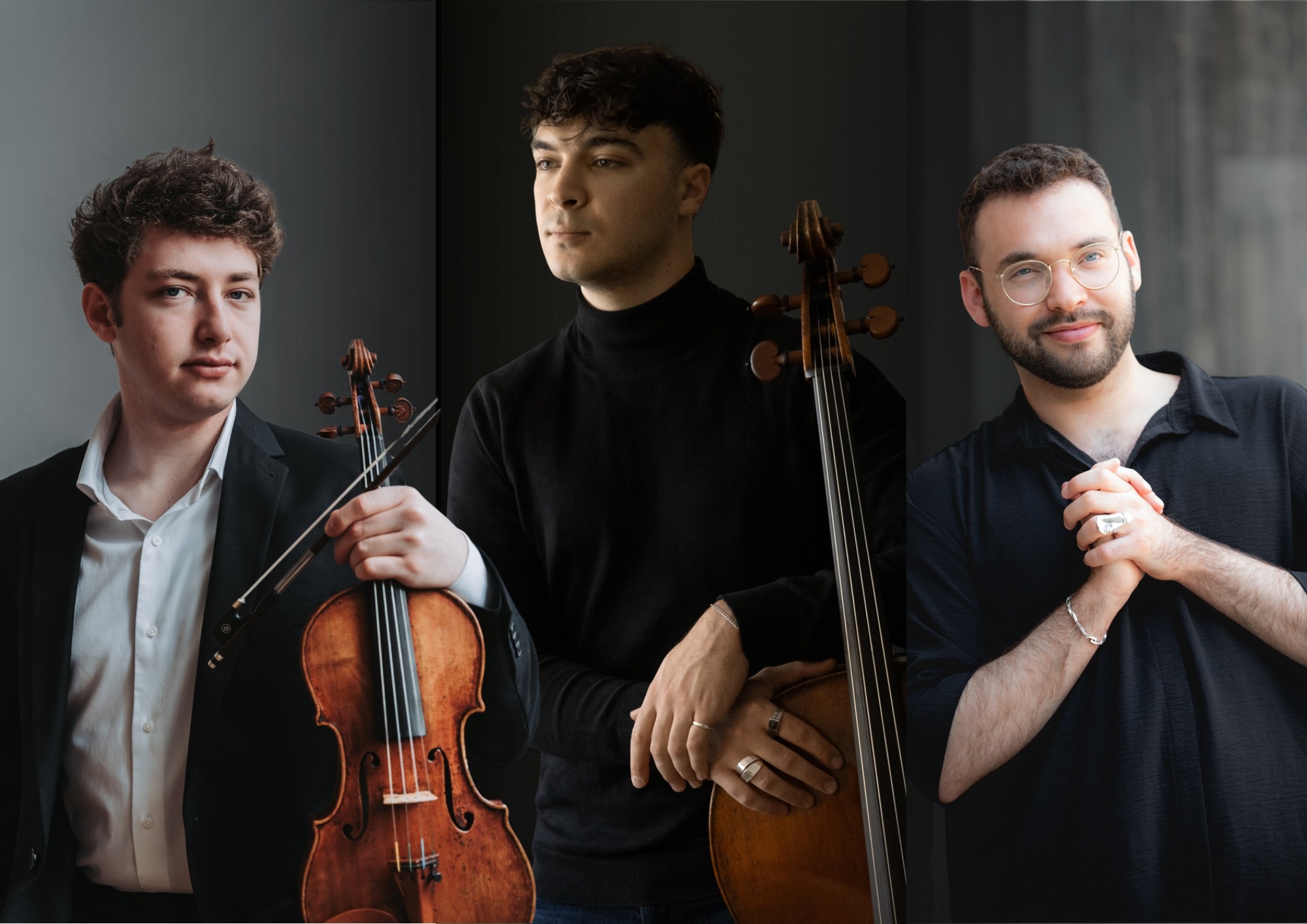 Bildunterschriften: Eröffnungskonzert mit Itamar Carmeli (© Eesa-Khoury Oukool), Petar Pejčić (© Davide Cerati) und Michael Shaham (© Julia Caffarena)